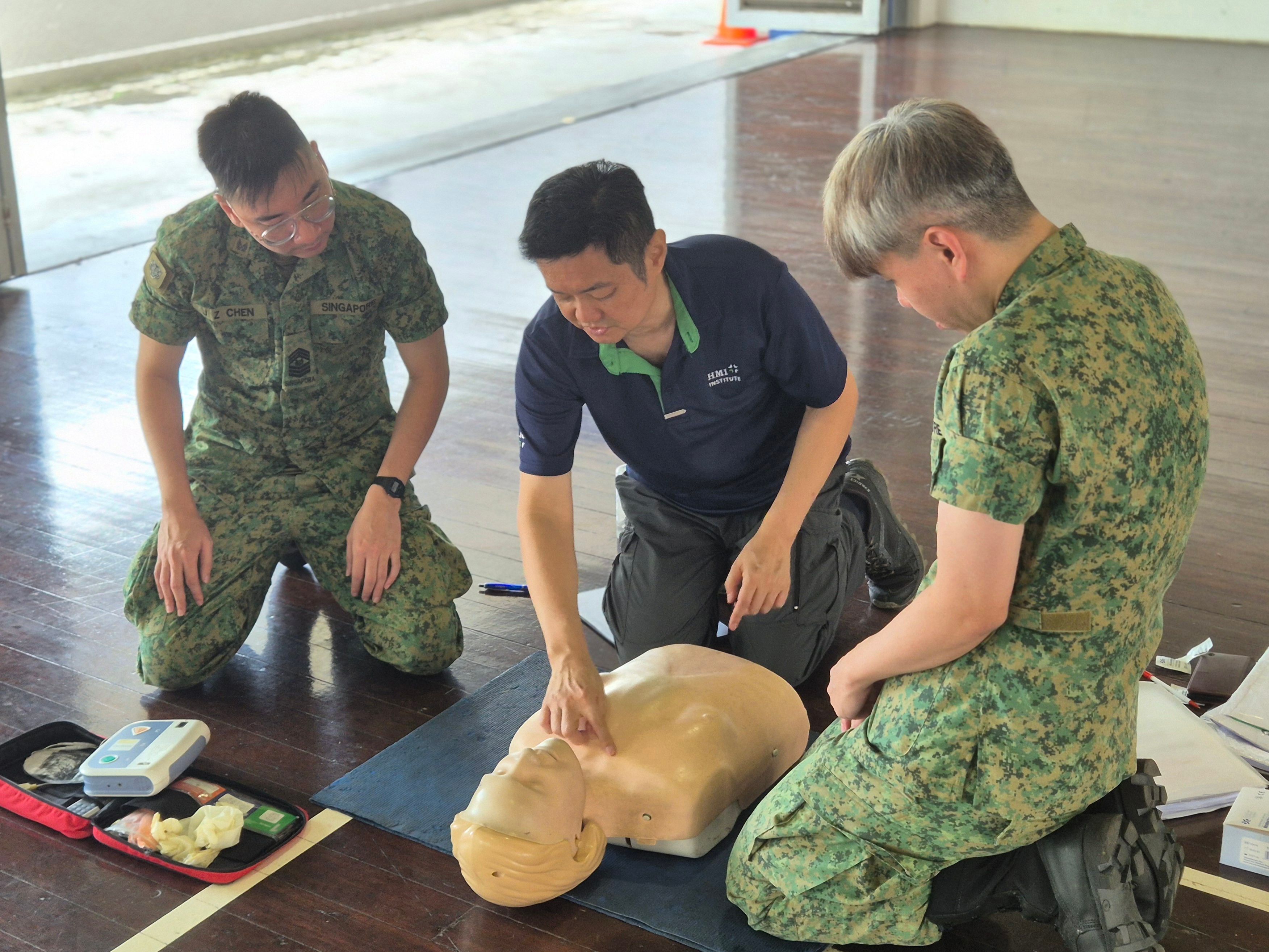 Photo: HMI Institute’s trainer conducting a demonstration on how to perform quality chest compressions